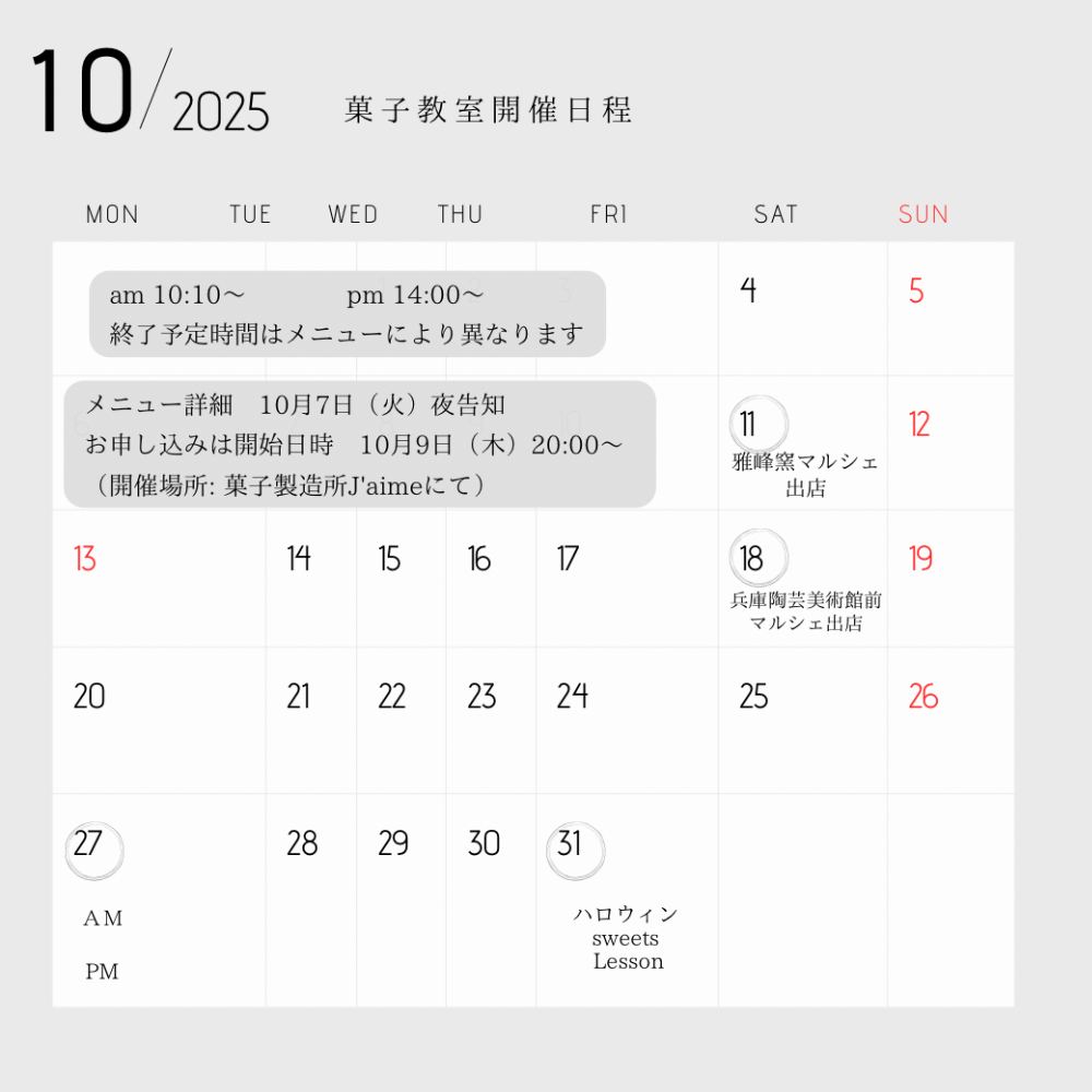 《10月菓子教室》